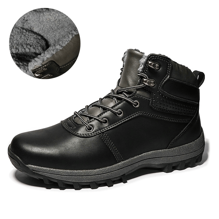 Men's ankle leather boots with inner fur and lace-up fastening. The shoes are very comfortable and suitable for winter due to the insulation.