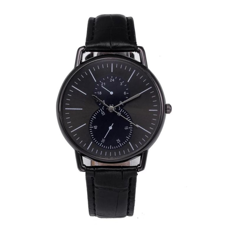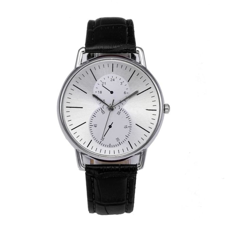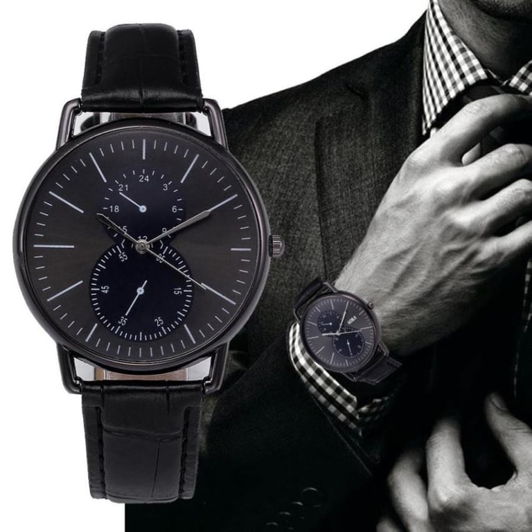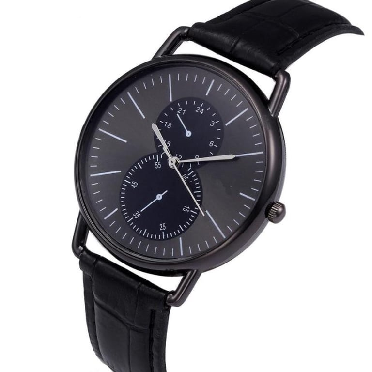 Men's watch in a luxurious design with a leather-look strap and a subtle dial without numbers. Available in multiple variants.