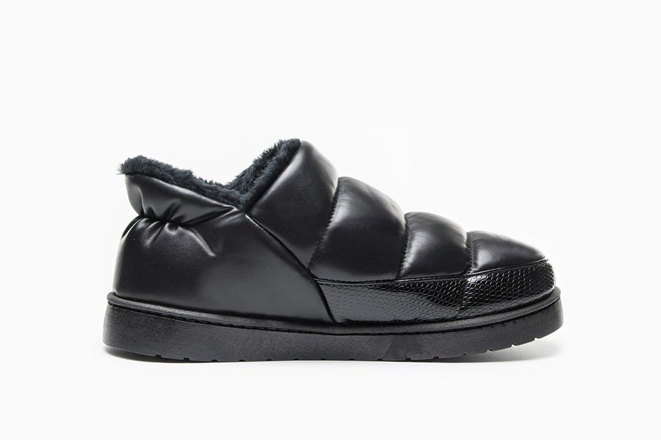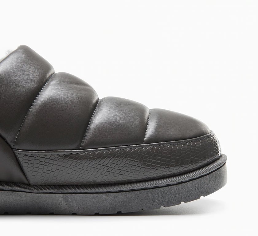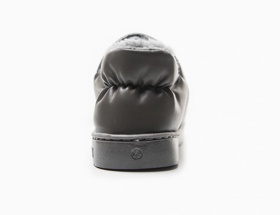 The boots are made of synthetic leather and are easy to slip on.