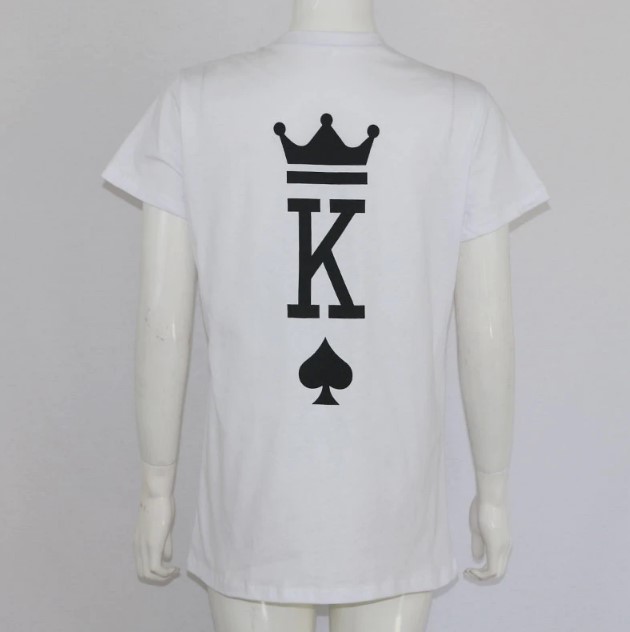Unite in style and playfulness with our t-shirts featuring the King and Queen card designs.