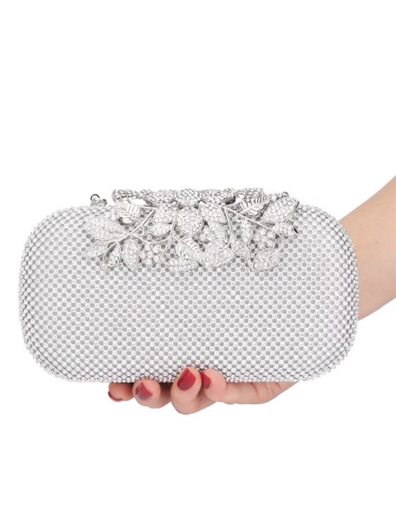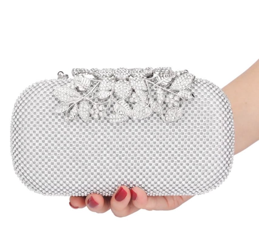 Trendy sparkling oval clutch with a silver clasp.