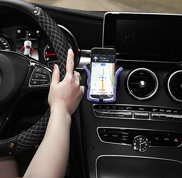 Luxury universal car phone holder with crystal decoration.