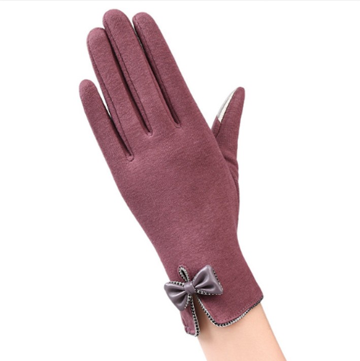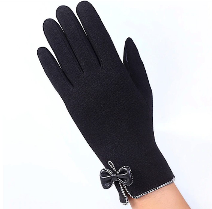 The gloves are made from high-quality material and are adorned with a bow.