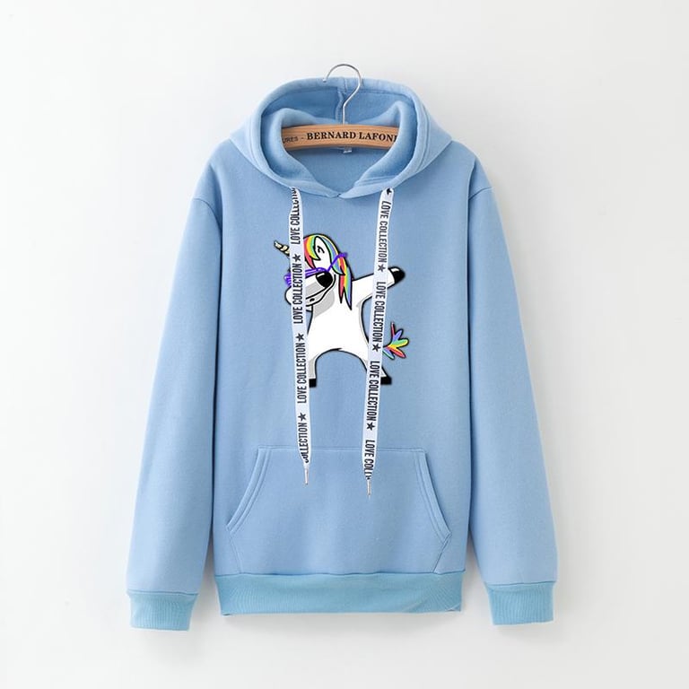 With this hoodie, you'll shine almost everywhere. The unicorn that does dab is very cool.