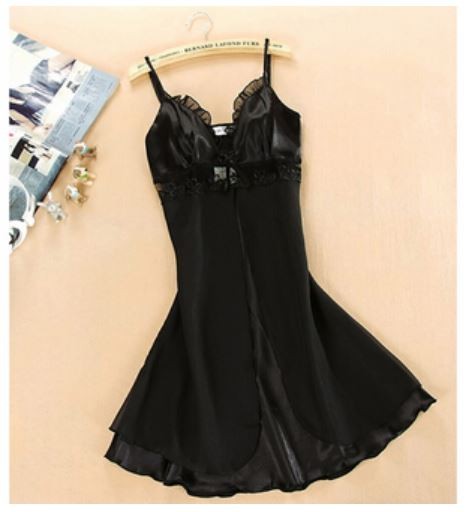 Luxury women's nightdress with a bow in black.