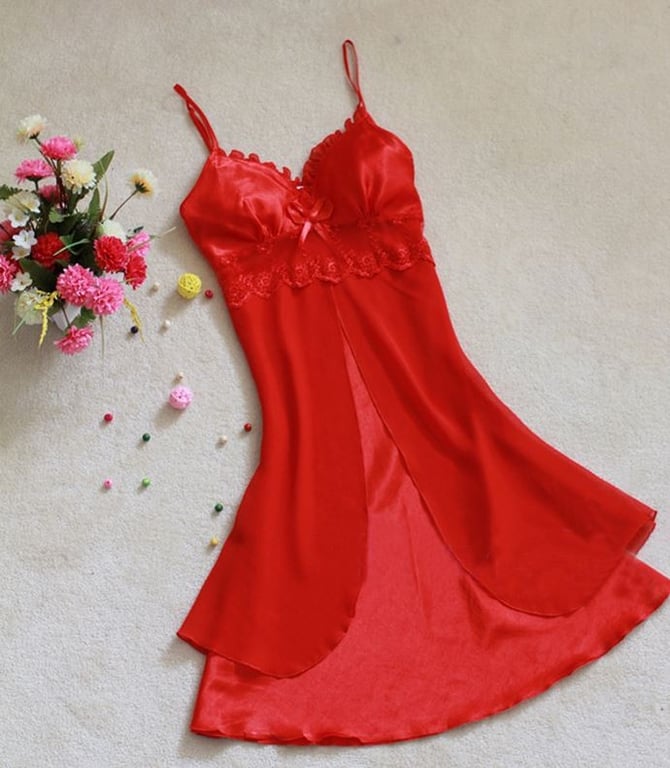 Luxury women's nightdress with a bow in red.