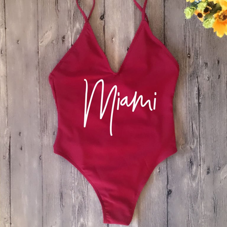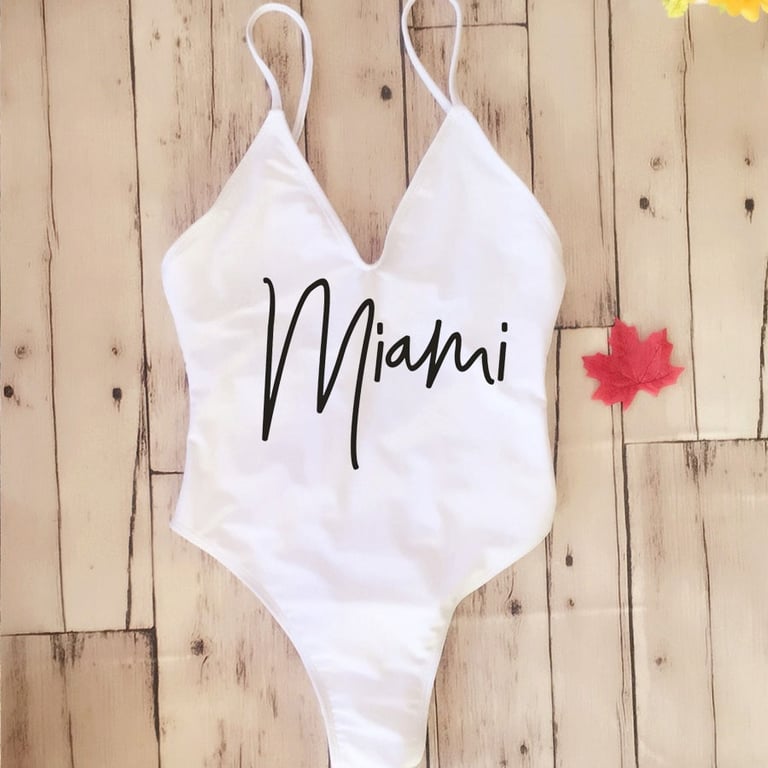 Luxury Women's One-Piece Swimsuit with 'Miami' Print