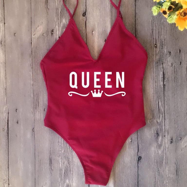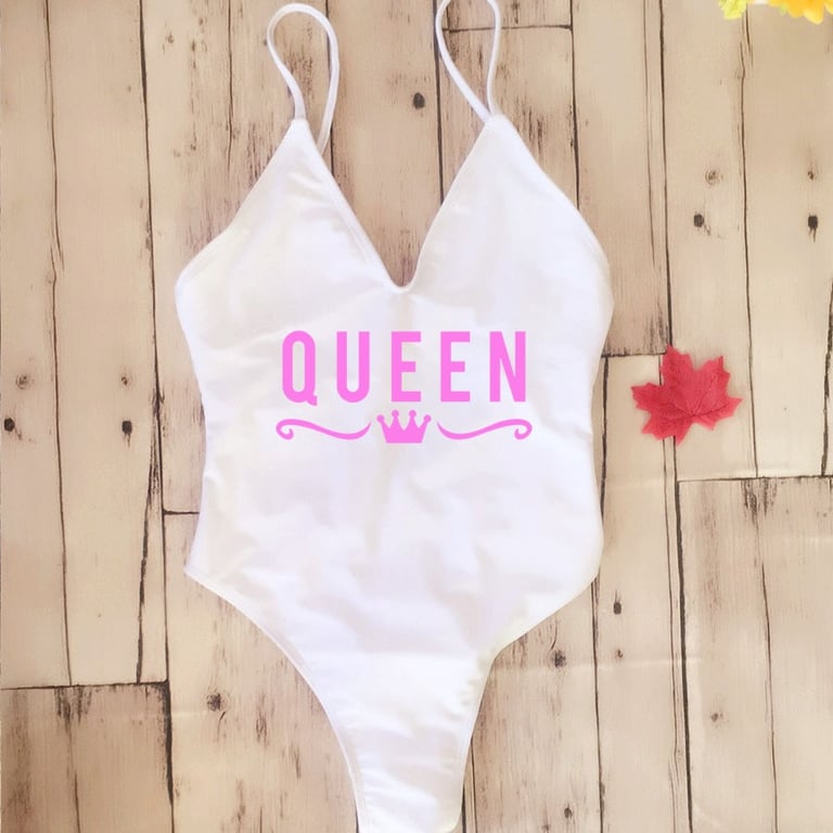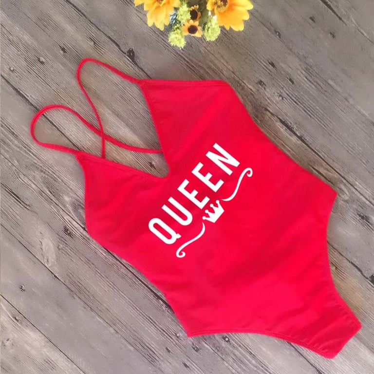 Luxury women's one-piece swimsuit with the inscription 'Queen'
