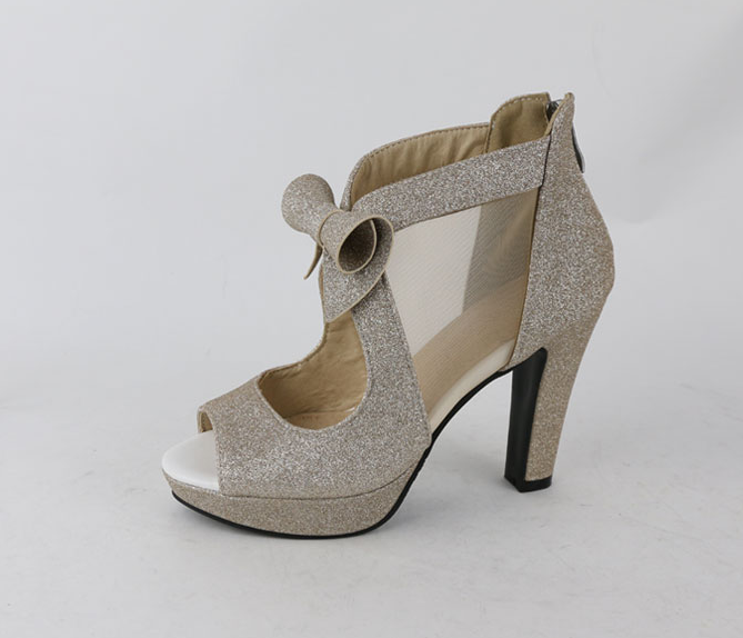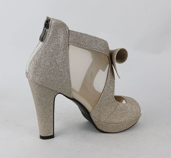 The heels have an open toe and fasten at the back with a zip.
