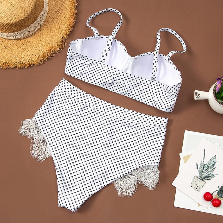 • Tags: women's swimsuit, two-piece swimsuit, polka dot swimsuit, polka dots, lace swimsuit, retro swimsuit