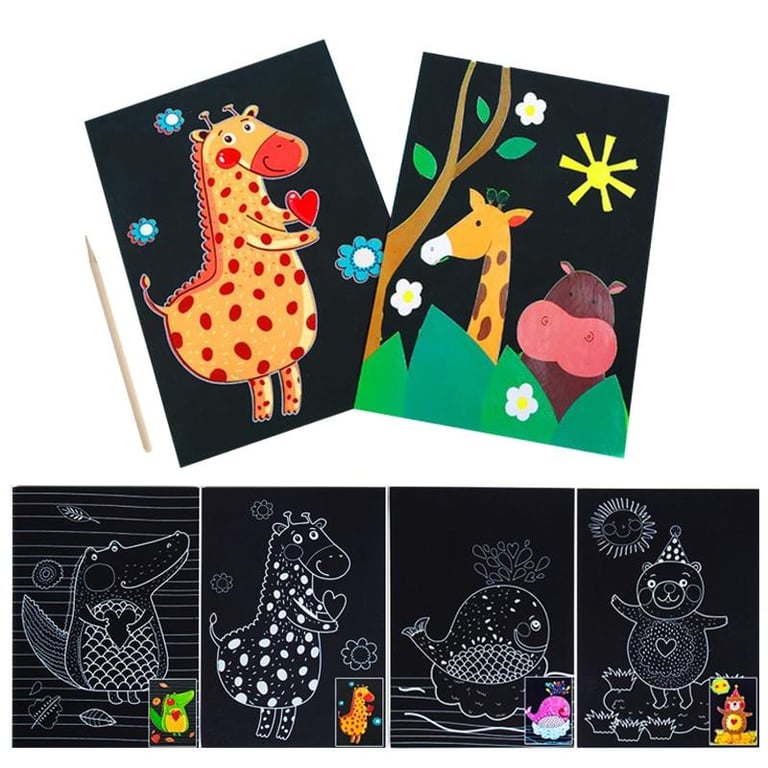Scratch-off colouring postcards for children. Beautiful colourful images.