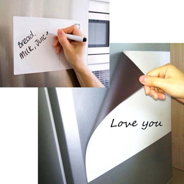 A practical fridge memo board where you can easily jot down reminders without the hassle of searching for a piece of paper or a pen! The size of the board corresponds to A5 dimensions.