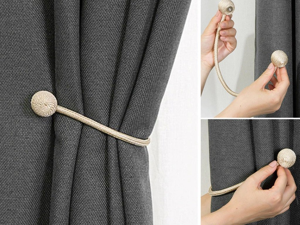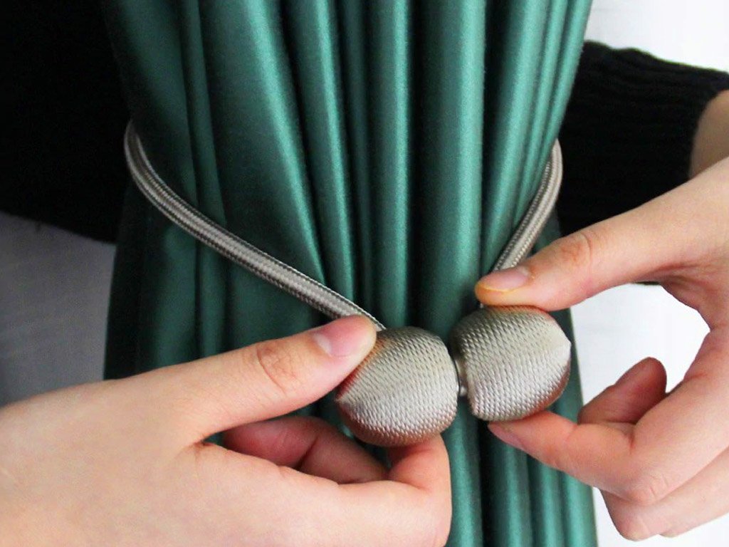 The magnetic curtain tieback is a beautiful aesthetic addition to your curtains. There are magnets on both sides, which allow you to secure the gathered curtain in various ways (depending on the thickness of the fabric). The magnetic tiebacks ensure that the curtains stay in place as they should.