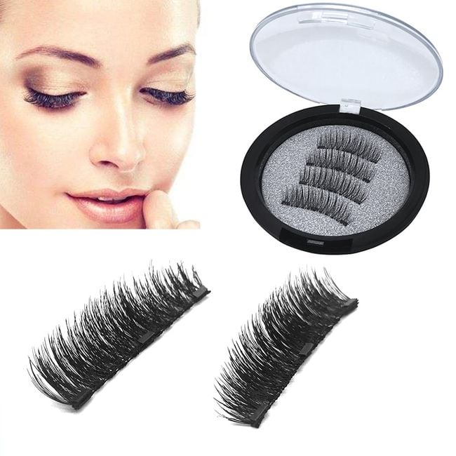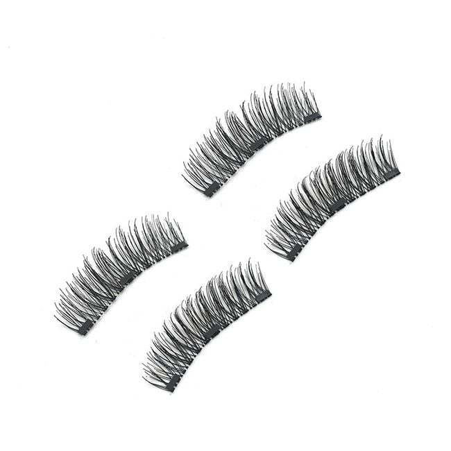 Magnetic lashes simply snap on and can be reused. They are especially ideal for women with glue allergies. The package contains 4 pieces.