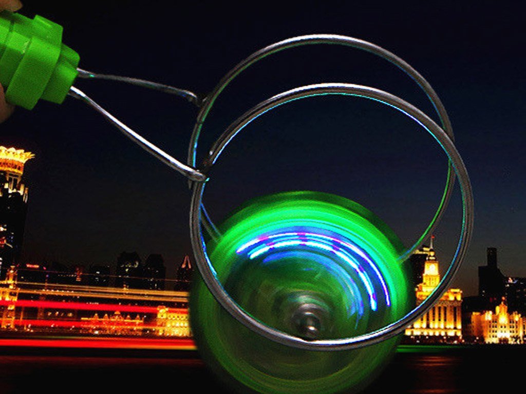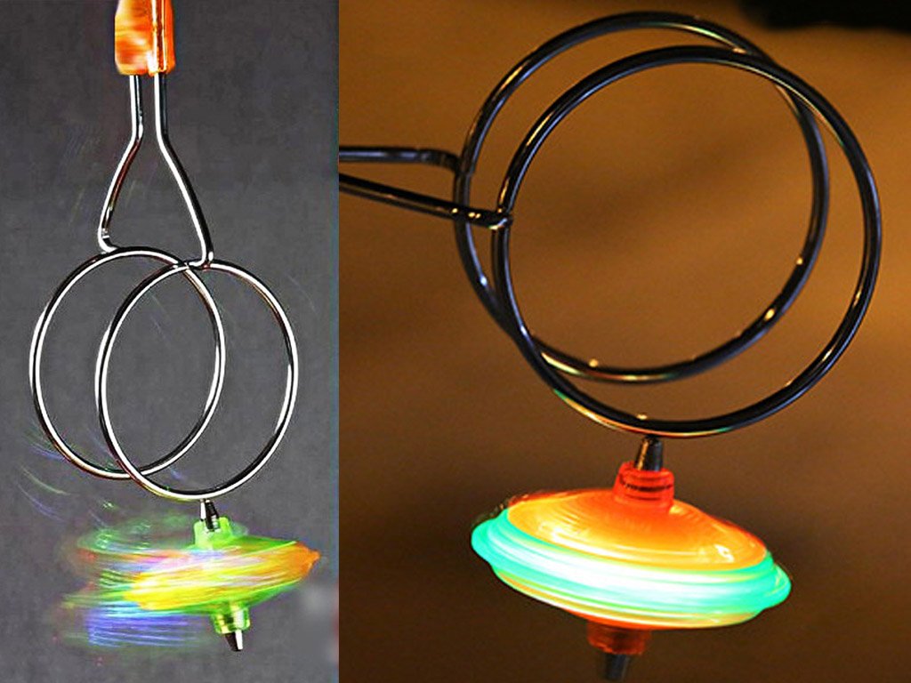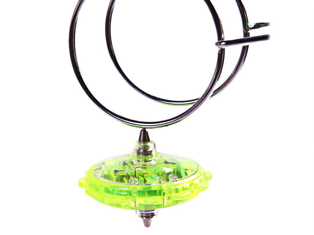 Retro spinning top toy in a modern design, with flashing LED lights and a magnetic spinning holder for impressive tricks. A great gift for both young and older children! Stunning LED light effects!