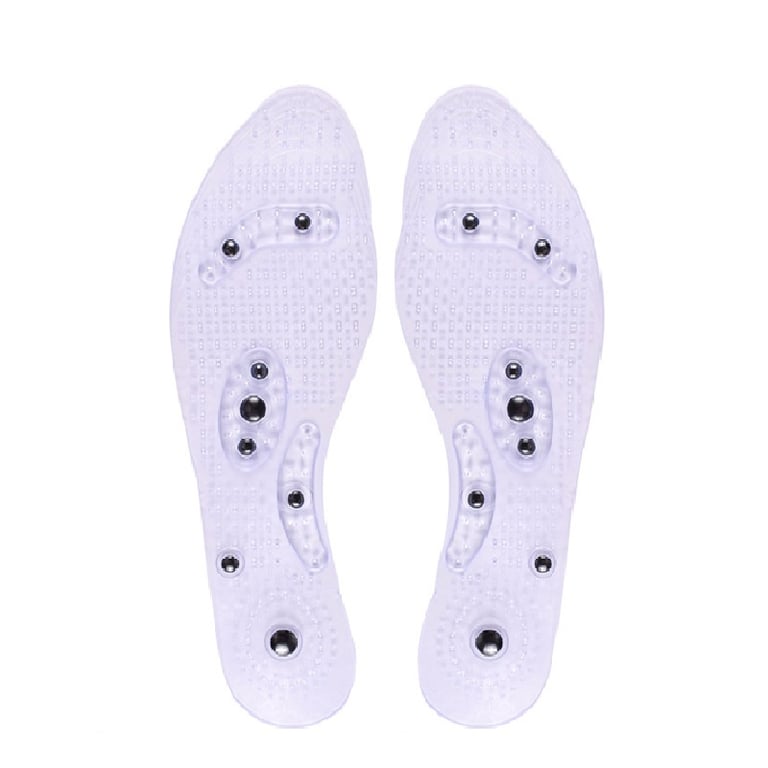 • Magnetic insoles are made from hygienic plastic material, with magnetic balls embedded in the lower part.
