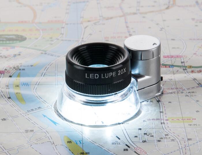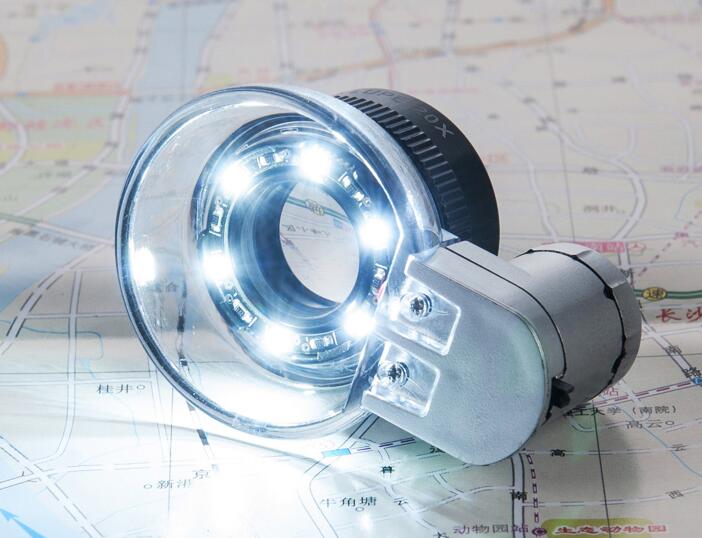Magnifying glass for map reading with LED lighting