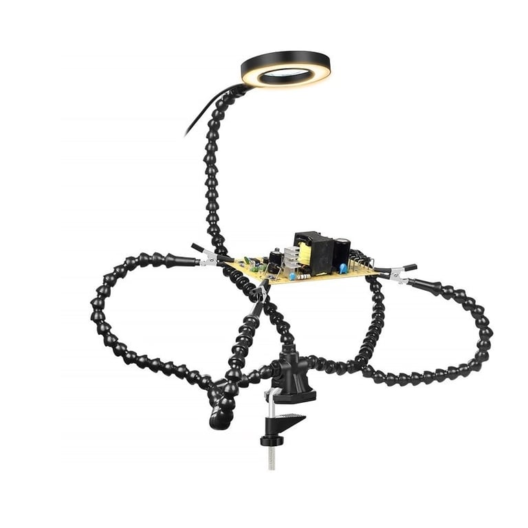 This magnifying glass with helping arms will be the ideal assistant for soldering and repairing small items. The helping arms allow you to keep your hands free, making your work more comfortable and precise. The intensity of the LED lighting can be adjusted as needed, thanks to 10 brightness levels.