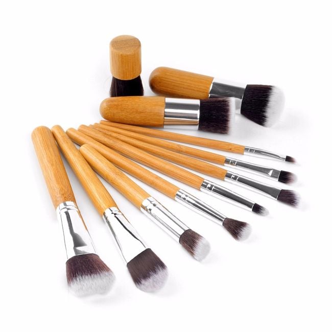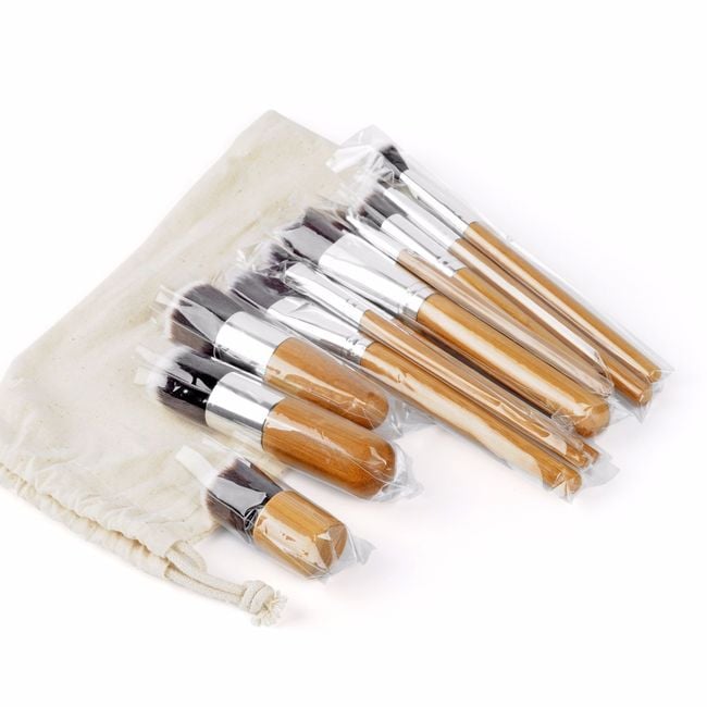 The brushes have a bamboo handle and are soft.