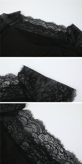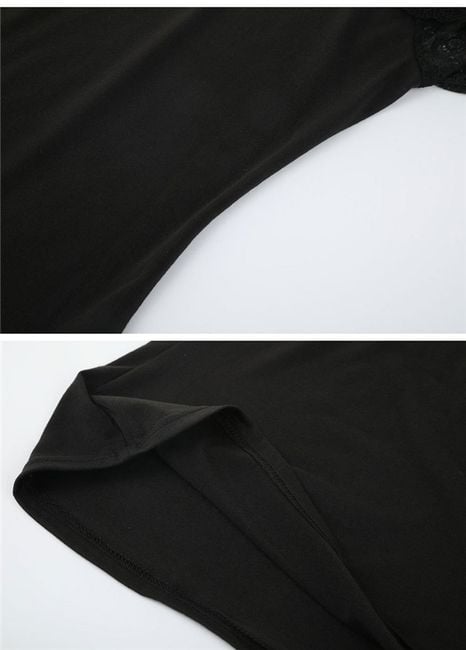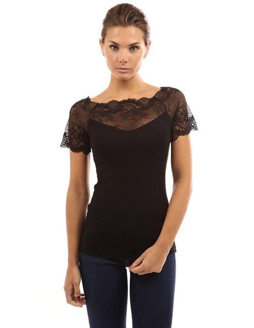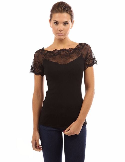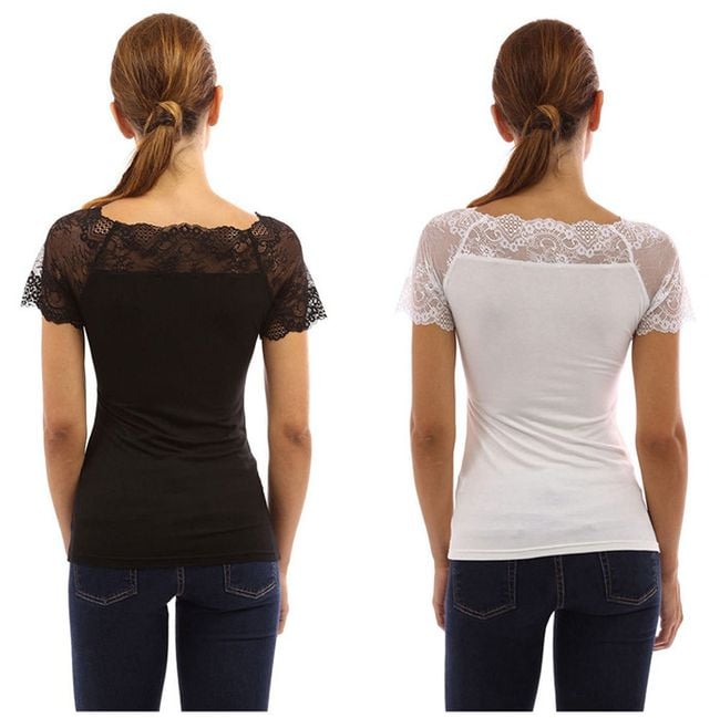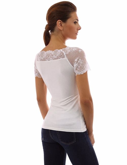Stylish t-shirt with short lace sleeves has a fitted cut. It is available in 2 colour variants.