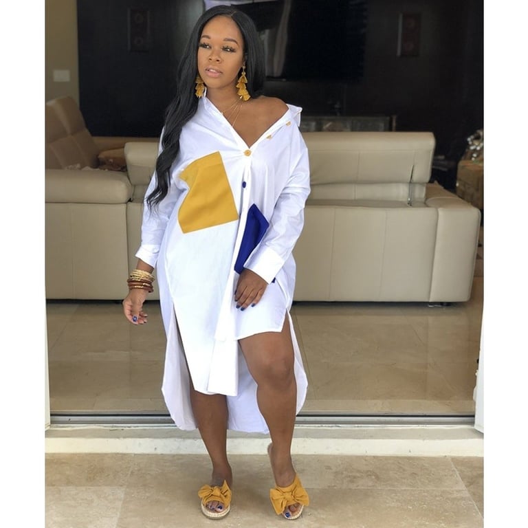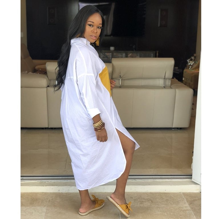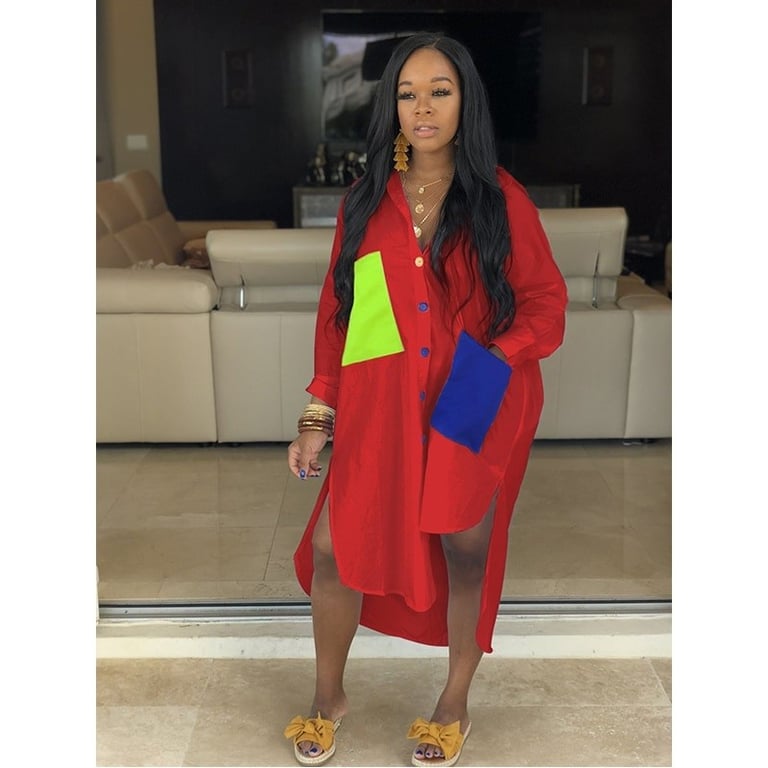 Women's shirt dress with long sleeves.
