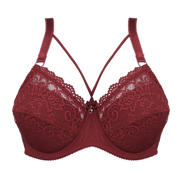 Women's bra with push-up effect. The bra is adorned with lace and a small pendant. Straps cross at the back. Available in multiple variants.