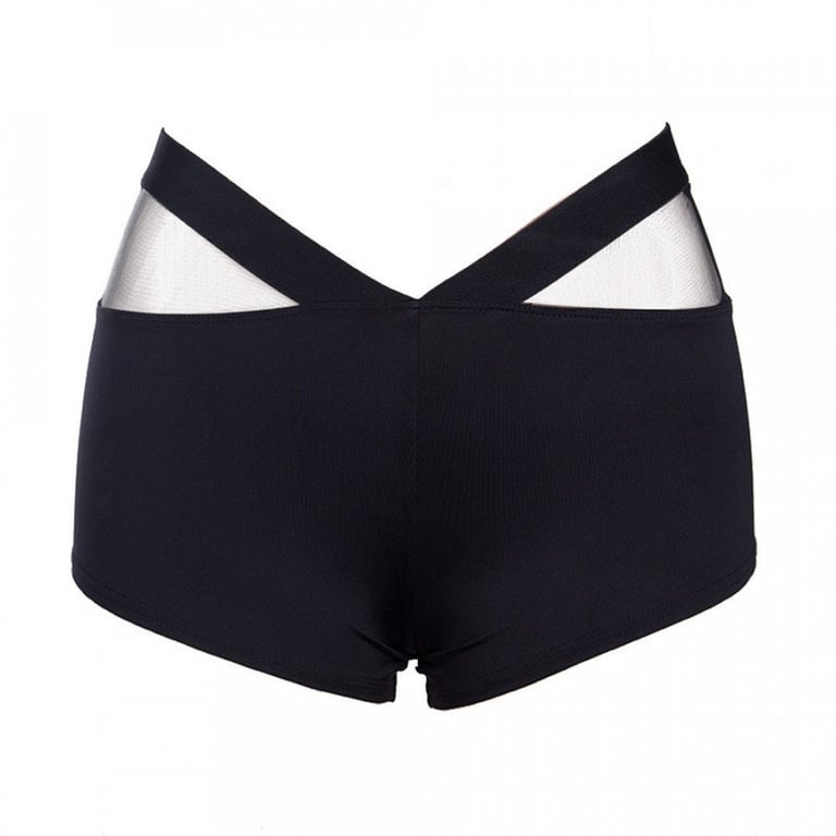 Women's mini shorts with a low waist and cutouts on the front and back. Push-up effect. Elastic material.