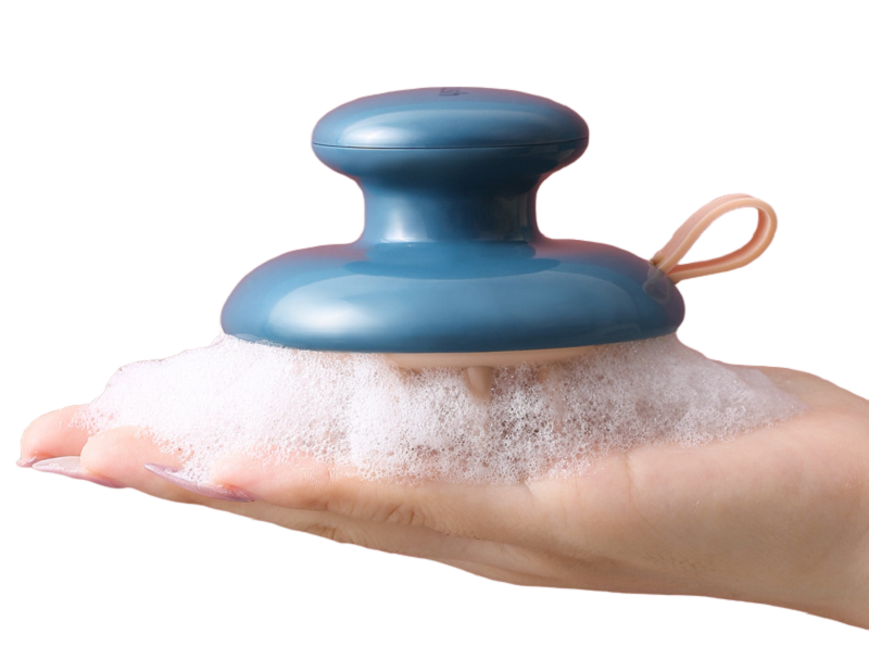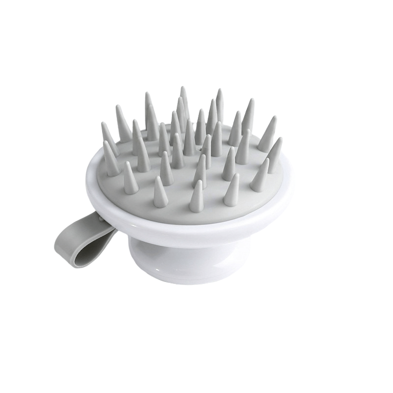 A massage brush that gently massages the scalp and promotes blood circulation. It has silicone bristles. It is also suitable for sensitive scalps. Reduces stress. Easy to hold.
