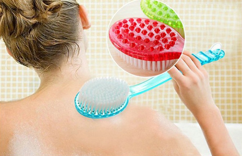 Massage brush with a long handle for easy washing of the back parts of the body.
