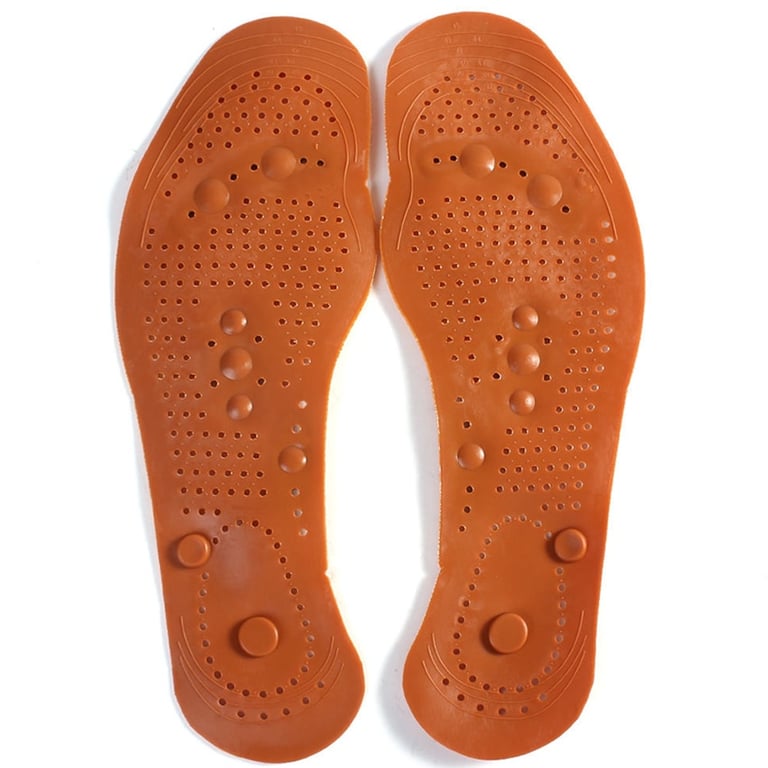 Massage insoles for shoes Machine. Do you spend all day on your feet? Do you suffer from frequent foot pain? These acupressure magnetic insoles will restore lightness to your feet, allowing you to enjoy every movement again. Product features: Material: 90% Plastic, 8 magnets Contents: 1 pair Warranty: 2 years Size: 25.5cm Colour: Brown