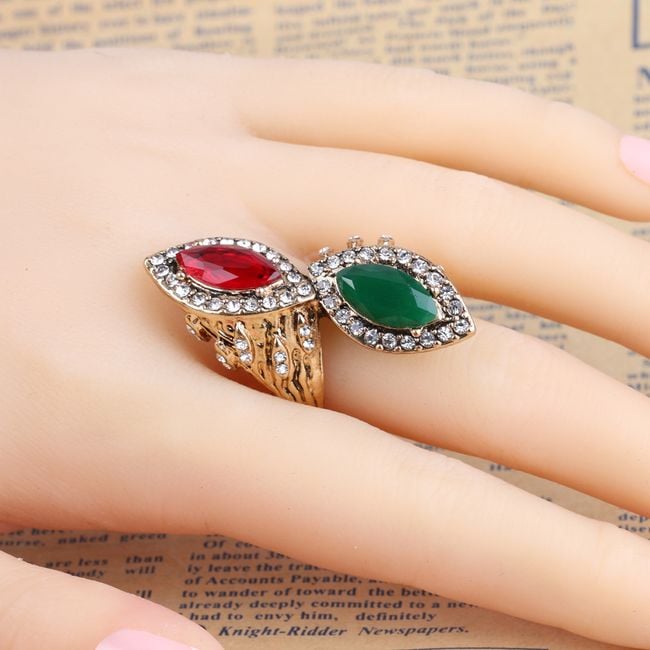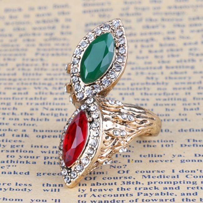 Decorative ring with prominent crystals and stones. You can choose from 2 colours.