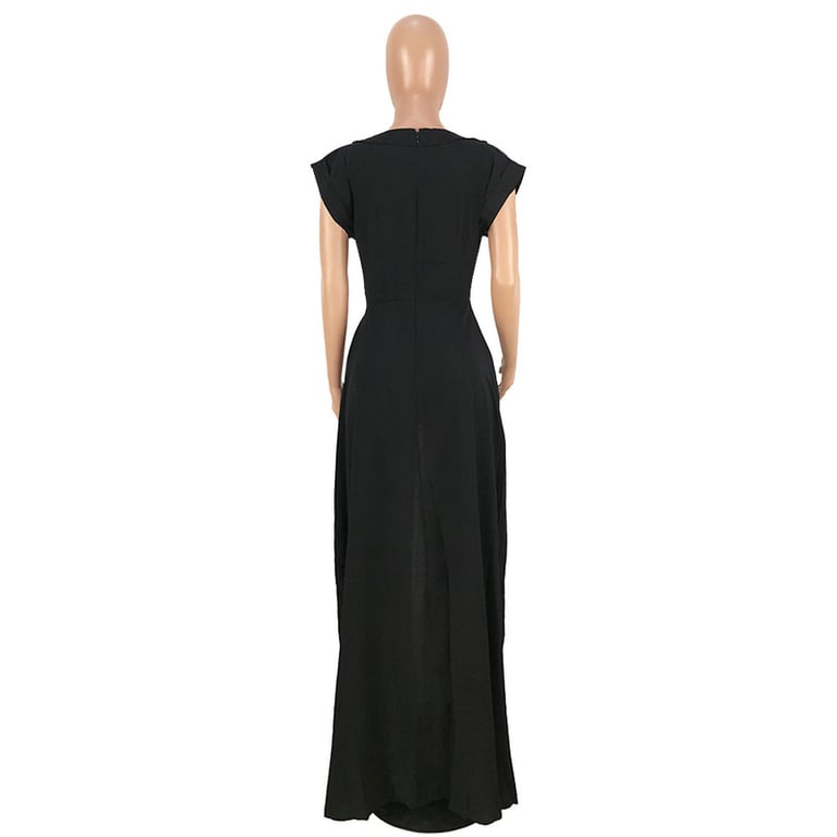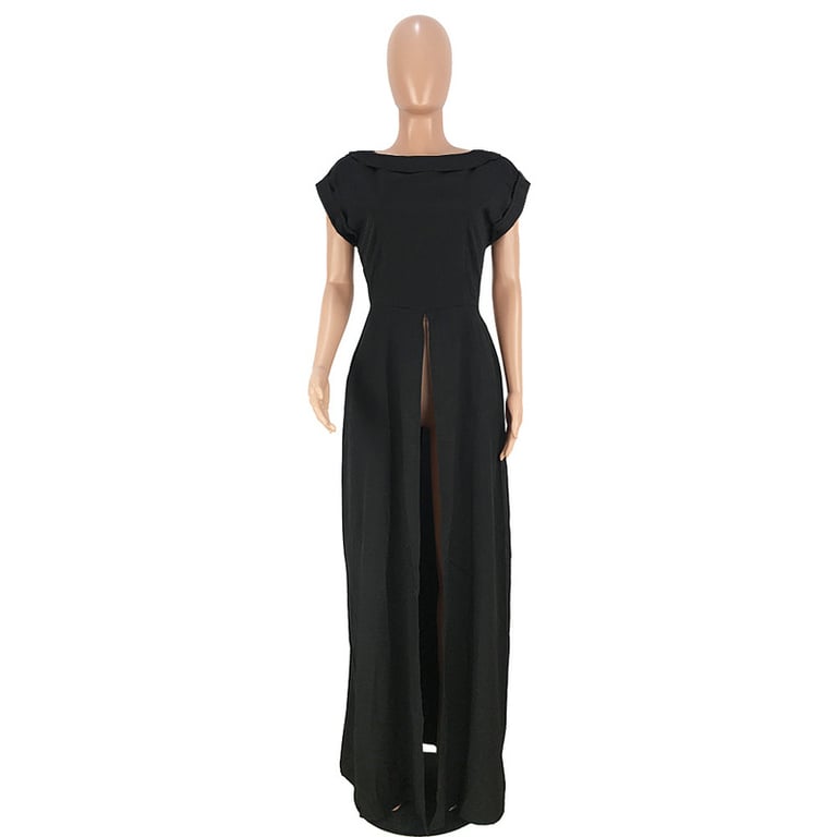 Women's maxi dress with short sleeves, featuring a high slit at the front.
