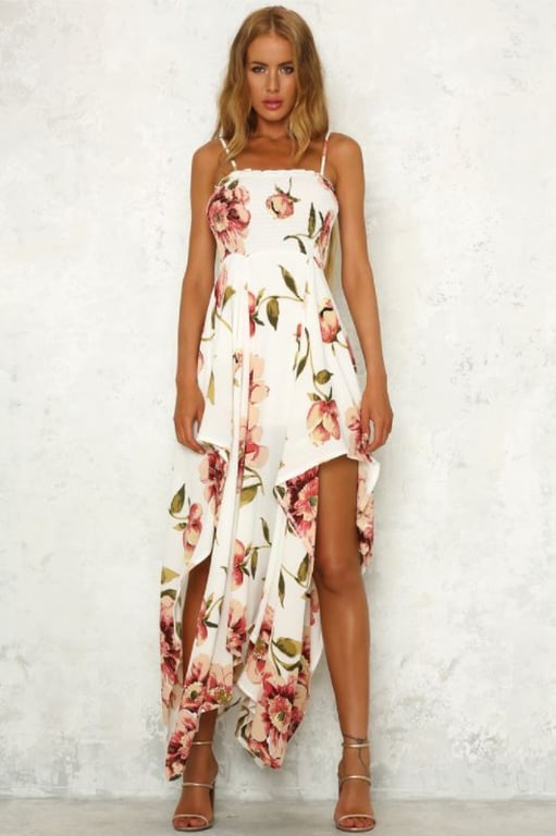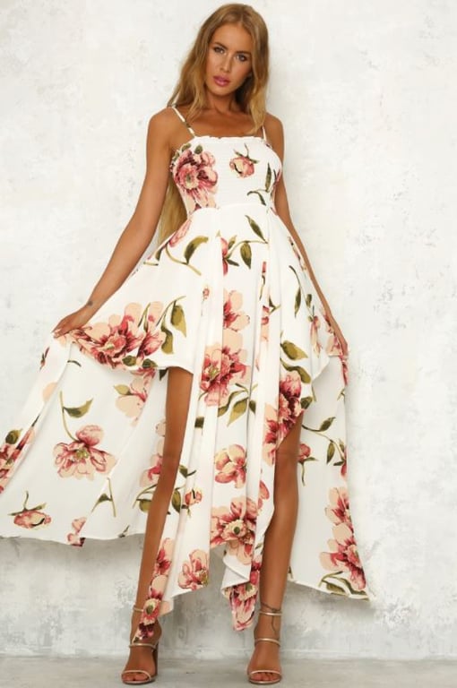 Maxi floral white beach summer dress