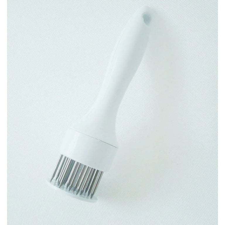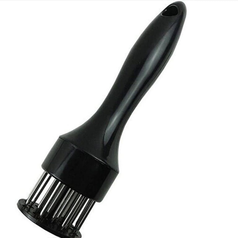 Place the tenderizer on the steak and press down; the needles will pierce the meat, making it more tender.