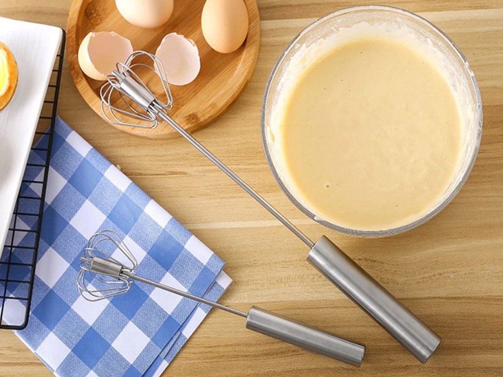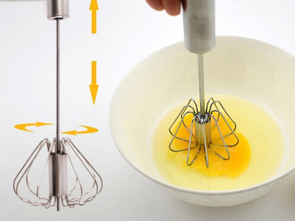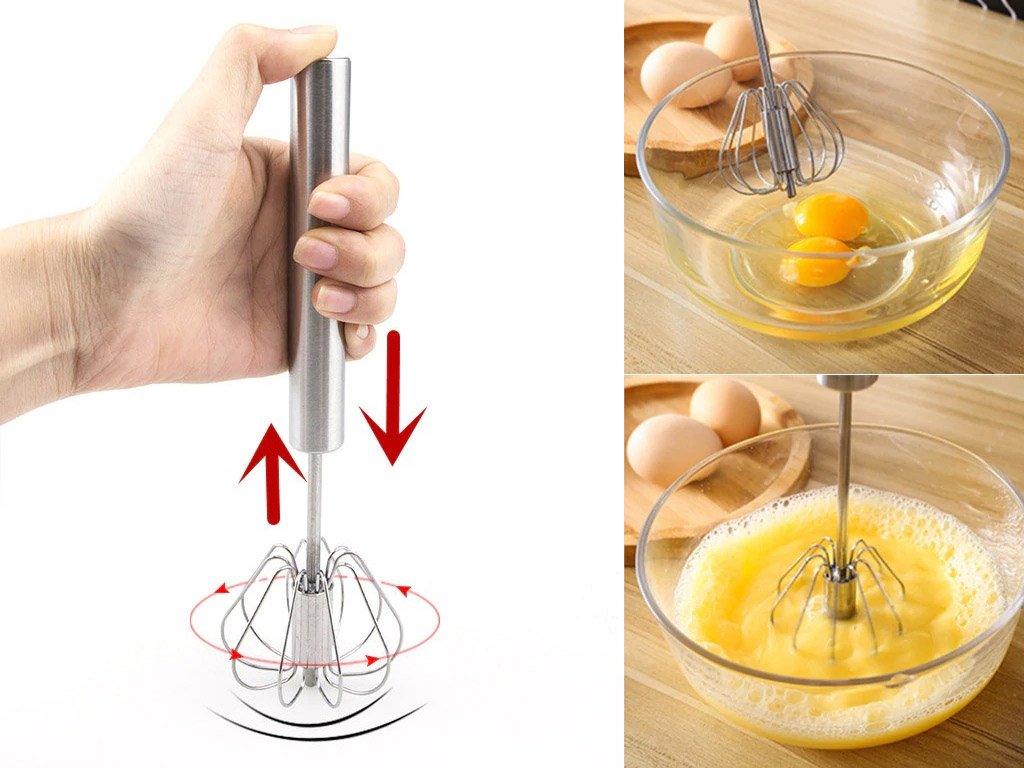 Mechanical whisk for whipping, with which you can easily whip eggs and creams with a few up and down movements. Save your time and energy when baking or preparing eggs.