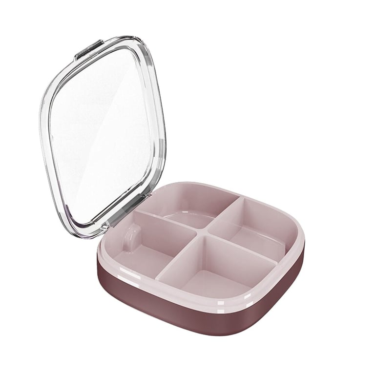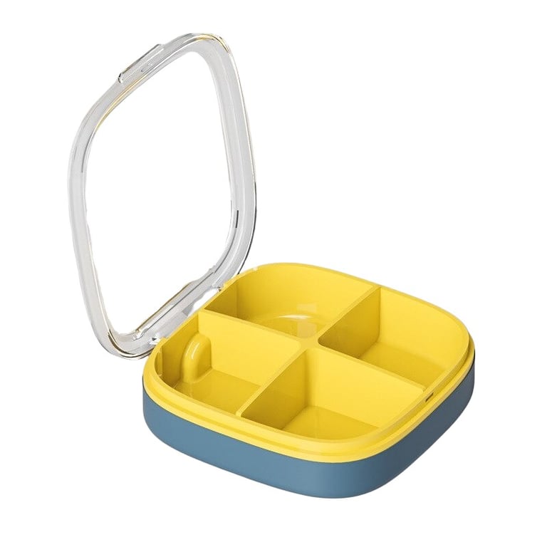 This pill box is the perfect way to organise your tablets. Thanks to its compact design, you can easily take it with you when you travel. The pill dispenser has four compartments, suitable for multiple medications per day. This box is made from durable PP plastic.