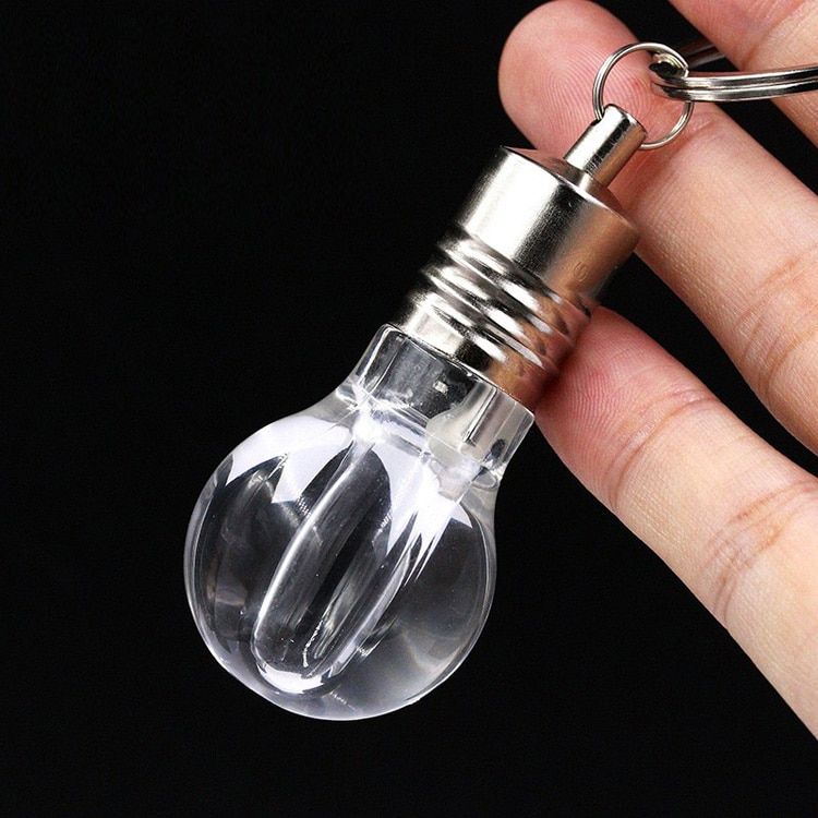 Stylish LED flash drive shaped like a bulb that lights up when plugged into a socket.