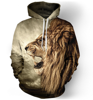 Men's 3D hooded sweatshirt with a lion motif.