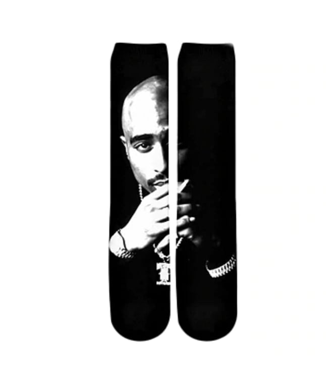 Socks featuring the print of a famous rap scene star will be loved by every rap enthusiast.