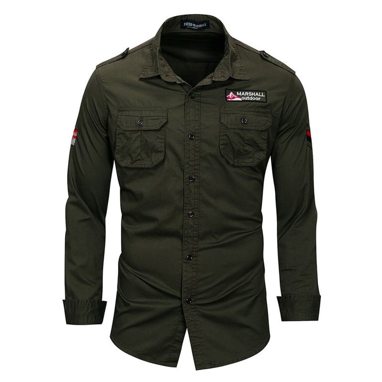 Men's shirt in army style. The shirt has long sleeves and a collar at the neck. Fitted cut with button fastening and chest pockets. Available in multiple colours.