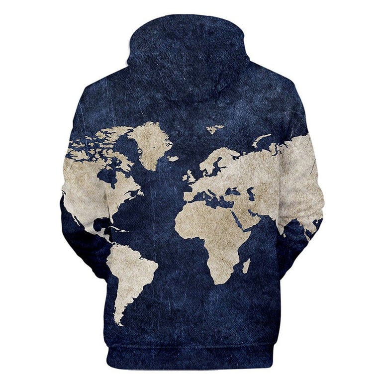 Attractive hoodie with a globe print. The cut is classic with a hood.