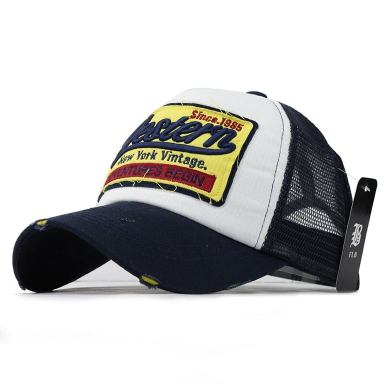 Men's baseball cap with a visor and a patch with text on the front. One size fits all. Available in multiple colour options.