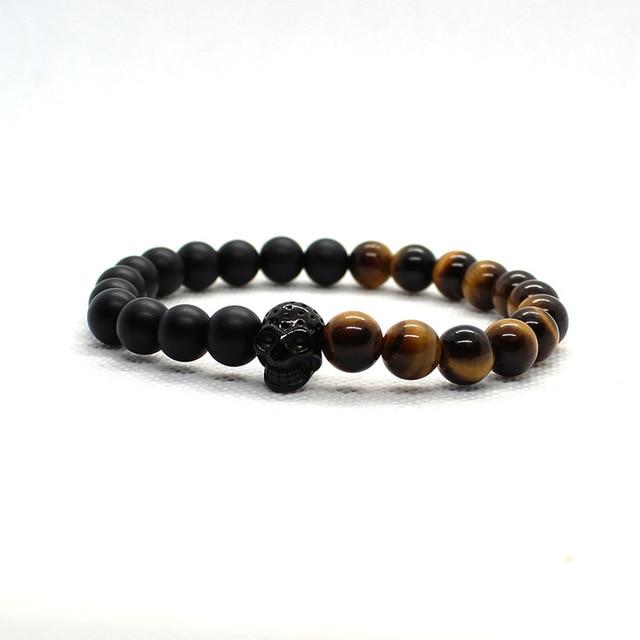Stylish men's bracelet with tiger's eye beads and a skull in the middle for lovers of original pieces.
