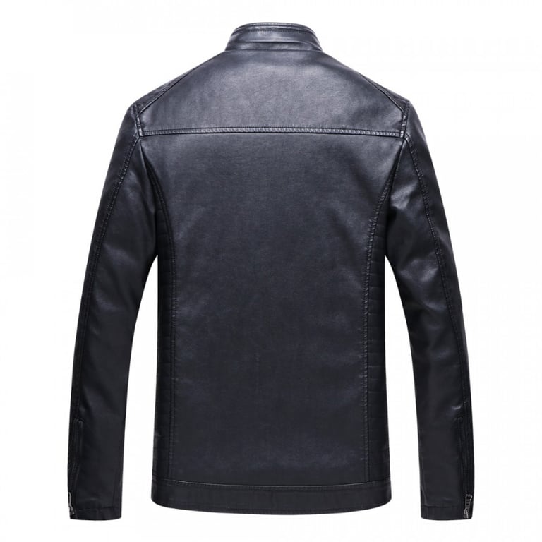 Men's biker-style jacket with fur. The jacket features a zip fastening, a collar at the neck, and several zip pockets. Available in two colour variants.