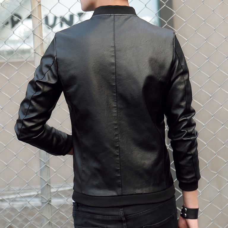 Men's jacket with a leather look. Bomber style. Collar at the neck and zip fastening. Two side pockets. Available in several variants.