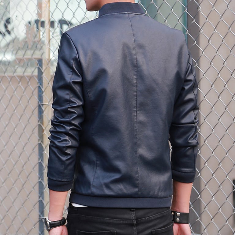 Men's jacket with a leather look. Bomber style. Collar at the neck and zip fastening. Two side pockets. Available in several variants.