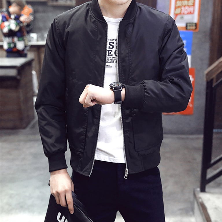 Men's lightweight loose-fitting jacket. Bomber style. Solid colour. Collar at the neck and zip fastening. Two side pockets. Available in three variants.
