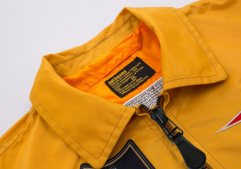 Men's bomber jacket with many patches and collar
