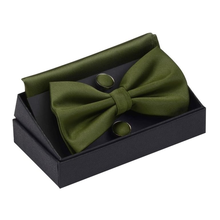 Package contents: 1x bow tie, 1x pocket square, 2x cufflinks