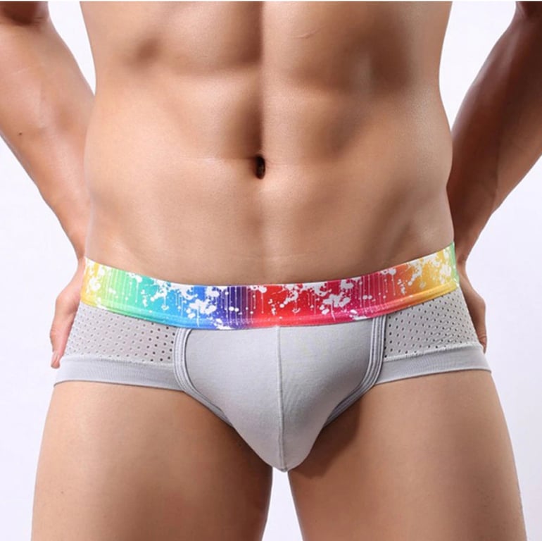Men's boxer shorts Cameron with rainbow trim – light grey